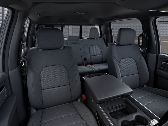 Big Horn Level 2 Equipment Group (115V Auxiliary Power Outlet, 115V Auxiliary Rear Power Outlet, 12 Touchscreen Display, 2nd Row in Floor Storage Bins, 3 Rear Seat Head Restraints, 4 Way Front Headrests, 400W Inverter, 4G LTE Wi-Fi Hot Spot, 9 Amplified Speakers with Subwoofer, Air Conditioning ATC with Dual Zone Control, Apple CarPlay, Auto Power-Folding Mirrors, Auto-Dimming Exterior Driver Mirror, Auto-Dimming Rear-View Mirror, Black Exterior Mirrors, Black Premium Power Mirrors, Body Color Fender Flares, Bucket Seats, Center Console Parts Module, Cluster 7.0 TFT Color Display, Configurable Drive Mode, Connected Travel and Traffic Services, Connectivity - US/Canada, Convex Wide-Angle Exterior Mirror Insert, Deluxe Cloth Bucket Seats, Disassociated Touchscreen Display, Exterior Mirrors Courtesy Lamps, Exterior Mirrors with Heating Element, Exterior Mirrors with Supplemental Signals, Front Seat Back Map Pockets, Full Length Floor Console, Global Telematics Box Module, Glove Box Lamp, Google Android Auto, GPS Antenna Input, GPS Navigation, HD Radio, Heated Front Seats, Heated Steering Wheel, Integrated Center Stack Radio, Integrated Voice Command with Bluetooth®, Leather Wrapped Steering Wheel, LED Dome Lamp with on/Off Switch, LED Footwell Lighting, Manual Adjust 4-Way Front Passenger Seat, Media Hub with 2 Charge Only USBs, Overhead LED Lamps, Power 2-Way Driver Lumbar Adjust, Power Adjust 8-Way Driver Seat, Power Adjustable Pedals, Premium Overhead Console, Radio: Uconnect 5 Navigation with 12.0 Display, Rear 60/40 Folding Seat, Rear Center Armrest, Rear Power Sliding Window, Rear Window Defroster, Remote Tailgate Release, Security Alarm, SiriusXM Radio Service, SiriusXM with 360L, Steering Wheel Mounted Audio Controls, Sun Visors with Illuminated Vanity Mirrors, Universal Garage Door Opener, and USB Host Flip), Night Edition (Accent Color Door Handles, Accent Color Premium Power Mirrors, Accent Color Tailgate Handle, Anti-Spin Differential Rear Axle, Black Exterior Truck Badging, Black Headlamp Bezels, Black Interior Accents, Black Painted Exterior Mirrors Caps, Black Tail Lamp Bezels, Body Color Front Bumper, Body Color Rear Bumper with Step Pads, Dual Exhaust with Black Tips, Grille Black Surround Black Mesh, RAM Grille Badge - Black, and Wheels: 20 x 9.0 Aluminum Painted Clad), Quick Order Package 27Z Big Horn, Trailer Tow Group II (Trailer Brake Control, Trailer Reverse Steering Control, and Trailer Tire Pressure Monitoring System), 4-Wheel Disc Brakes, 48V Belt Starter Generator, 6 Speakers, ABS brakes, Air Conditioning, Alloy wheels, AM/FM radio, Apple CarPlay/Android Auto, Auto High-beam Headlights, Brake assist, Bumpers: chrome, Cloth Bucket Seats, Compass, Delay-off headlights, Driver door bin, Dual front impact airbags, Dual front side impact airbags, Electronic Stability Control, Exterior 115V AC Outlet, Front anti-roll bar, Front Bucket Seats, Front Center Armrest w/Storage, Front fog lights, Front License Plate Bracket, Front reading lights, Front wheel independent suspension, Fully automatic headlights, Heated door mirrors, Illuminated entry, Low tire pressure warning, Manual Adjust 4-Way Driver Seat, Manual Folding Exterior Mirrors, Manufacturer's Statement of Origin, Mopar Black Tubular Side Steps, MOPAR Front and Rear Rubber Floor Mats, MyFlexCare Service Plan, Occupant sensing airbag, Outside temperature display, Overhead airbag, Overhead console, Panic alarm, ParkView Rear Back-Up Camera, Passenger door bin, Passenger vanity mirror, Power door mirrors, Power steering, Power windows, Radio data system, Radio: Uconnect 5 W with 8.4 Display, RAM Grille Badge - Chrome, RamBox Cargo Management System, Rear anti-roll bar, Rear step bumper, Remote keyless entry, Speed control, Supplier Part Tracking (J-1), Tachometer, Telescoping steering wheel, Tilt st