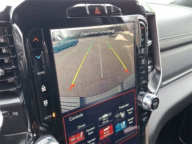 Bed Utility Group (Deployable Bed Step, LED Bed Lighting, and Spray In Bedliner), Cold Weather Group (Engine Block Heater and Winter Front Grille Cover), Laramie Level 1 Equipment Group (2nd Row In Floor Storage Bins, Auto High Beam Headlamp Control, Blind Spot & Cross Path Detection, Exterior Mirrors w/Memory, Foam Bottle Insert (Door Trim Panel), Mirror-Mounted Aux Reverse Lamps, Power Adjustable Convex Aux Mirrors, Power Adjustable Pedals w/Memory, Power Chrome Tow Mirrors w/Convex Spotter & Memory, Radio/Driver Seat/Mirrors/Pedals Memory, Rain Sensitive Windshield Wipers, Remote Tailgate Release, Single Disc Remote CD Player, and Ventilated Front Seats), Off Road Package (Front Performance Tuned Shock Absorbers, Hill Descent Control, Off Road Decal, Rear Performance Tuned Shock Absorbers, and Tow Hooks), Protection Group, Quick Order Package 2HH Laramie, Snow Chief Group (220 Amp Alternator, Anti-Spin Differential Rear Axle, Clearance Lamps, and I/P Mounted Auxiliary Switches), Sport Appearance Package (Black Interior Accents, Body Color Door Handles, Body Color Grille Surround, Painted Front Bumper, Painted Rear Bumper, and Sport Decal), 1-Year SiriusXM Guardian Trial, 10 Speakers, 115V Auxiliary Rear Power Outlet, 12 Touchscreen Display, 2 Way Rear Headrest Seat, 3.73 Axle Ratio, 4 Way Front Headrests, 4-Wheel Disc Brakes, 5-Year SiriusXM Traffic Service, 5-Year SiriusXM Travel Link Service, 5th Wheel/Gooseneck Towing Prep Group, ABS brakes, Active Noise Control System, Adjustable pedals, Air Conditioning, Alloy wheels, AM/FM radio: SiriusXM, Apple CarPlay, Apple CarPlay/Android Auto, Auto-dimming Rear-View mirror, Automatic temperature control, Brake assist, Bumpers: chrome, Compass, Delay-off headlights, Disassociated Touchscreen Display, Driver door bin, Driver vanity mirror, Dual front impact airbags, Dual front side impact airbags, Electronic Stability Control, Electronically Controlled Throttle, For Details Visit DriveUconnect.com, Front anti-roll bar, Front Center Armrest w/Storage, Front dual zone A/C, Front fog lights, Front reading lights, Front Seat Back Map Pockets, Fully automatic headlights, Garage door transmitter, Google Android Auto, GPS Antenna Input, GPS Navigation, HD Radio, Heated door mirrors, Heated Front Seats, Heated front seats, Heated Steering Wheel, Heated steering wheel, Illuminated entry, Integrated Voice Command w/Bluetooth®, Leather steering wheel, Leather Trim 40/20/40 Bench Seat, Low tire pressure warning, Occupant sensing airbag, Outside temperature display, Overhead airbag, Overhead console, Panic alarm, ParkSense Front/Rear Park Assist System, ParkView Rear Back-Up Camera, Passenger door bin, Passenger vanity mirror, Power 2-Way Driver Lumbar Adjust, Power 2-Way Passenger Lumbar Adjust, Power Adjust 8-Way Driver Seat, Power Adjust 8-Way Front Passenger Seat, Power door mirrors, Power driver seat, Power passenger seat, Power steering, Power windows, Radio data system, Radio: Uconnect 12.0 w/Navigation, Radio: Uconnect 4 w/8.4 Display, Rear 60/40 Folding Seat, Rear anti-roll bar, Rear reading lights, Rear seat center armrest, Rear step bumper, Rear window defroster, Remote keyless entry, Security system, Selectable Tire Fill Alert, SiriusXM Satellite Radio, SiriusXM Traffic Plus, SiriusXM Travel Link, SiriusXM w/360L, Speed control, Split folding rear seat, Steering wheel mounted audio controls, Tachometer, Tilt steering wheel, Tip Start, Tire Fill Alert (DISC), Traction control, Trip computer, Turn signal indicator mirrors, USB Host Flip, Variably intermittent wipers, Vendor Painted Cargo Box Tracking, Voltmeter, and Wheels: 18 x 8.0 Polished AluminuM.