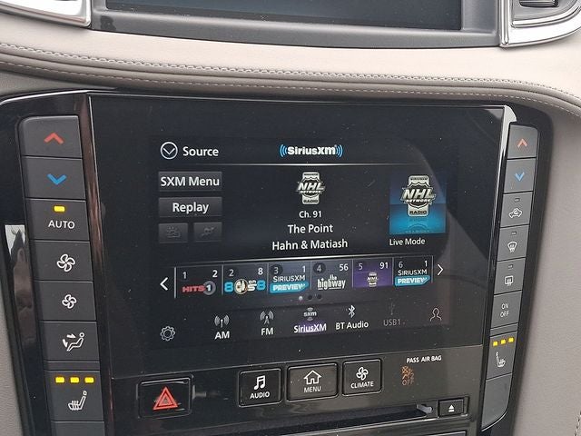 - Radio: HD Audio System -inc: 6 speakers, INFINITI InTouch, INFINITI InTouch services, INFINITI InTouch dual display system w/upper 8" and lower 7" HD touch screens, wireless Apple CarPlay, Android Auto, HD Radio technology, SiriusXM radio w/advanced audio features and 90-day complimentary trial, SiriusXM Travel Link w/90-day complimentary trial, INFINITI voice recognition, Siri Eyes Free, Wi-Fi hotspot, active noise cancellation, Bluetooth® hands-free phone system and streaming audio via Bluetooth®