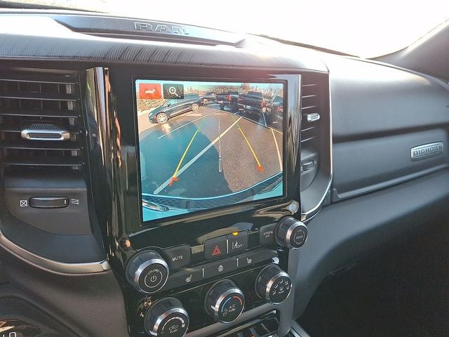 Bed Utility Group (Exterior 115V AC Outlet, MOPAR 4 Adjustable Cargo Tie-Down Hooks, MOPAR Spray In Bedliner, and Pick-Up Box Lighting), Big Horn Level 1 Equipment Group (115V Auxiliary Power Outlet, 2nd Row In Floor Storage Bins, 400W Inverter, Auto Power-Folding Mirrors, Auto-Dimming Exterior Driver Mirror, Auto-Dimming Rear-View Mirror, Black Exterior Mirrors, Black Premium Power Mirrors, Convex Wide-Angle Exterior Mirror Insert, Exterior Mirrors Courtesy Lamps, Exterior Mirrors w/Heating Element, Exterior Mirrors w/Supplemental Signals, Glove Box Lamp, Heated Front Seats, Heated Steering Wheel, Leather Wrapped Steering Wheel, Power 2-Way Driver Lumbar Adjust, Power Adjust 8-Way Driver Seat, Power Adjustable Pedals, Rear Power Sliding Window, Rear Window Defroster, Steering Wheel Mounted Audio Controls, Sun Visors w/Illuminated Vanity Mirrors, and Universal Garage Door Opener), Quick Order Package 23Z Big Horn (Big Horn Badge), FCA US LLC Certified Pre-Owned Certified, 3 Rear Seat Head Restraints, 3.21 Rear Axle Ratio, 4 Way Front Headrests, 4-Wheel Disc Brakes, 4G LTE Wi-Fi Hot Spot, 6 Speakers, ABS brakes, Air Conditioning, Alloy wheels, AM/FM radio, Apple CarPlay/Android Auto, Auto High-beam Headlights, Brake assist, Bumpers: chrome, Cloth Bench Seat, Compass, Connectivity - US/Canada, Delay-off headlights, Driver door bin, Dual front impact airbags, Dual front side impact airbags, Electronic Stability Control, Front anti-roll bar, Front Center Armrest w/Storage, Front fog lights, Front reading lights, Front Seat Back Map Pockets, Front wheel independent suspension, Fully automatic headlights, GPS Antenna Input, Heated door mirrors, Illuminated entry, Integrated Voice Command w/Bluetooth®, Low tire pressure warning, Manual Adjust 4-Way Front Passenger Seat, Manual Folding Exterior Mirrors, Occupant sensing airbag, Outside temperature display, Overhead airbag, Overhead console, Panic alarm, ParkView Rear Back-Up Camera, Passenger door bin, Passenger vanity mirror, Power door mirrors, Power steering, Power windows, Radio data system, Radio: Uconnect 5 W w/8.4 Display, RAM Grille Badge - Chrome, Rear 60/40 Folding Seat, Rear anti-roll bar, Rear seat center armrest, Rear step bumper, Remote keyless entry, Speed control, Split folding rear seat, Supplier Part Tracking (J-1), Tachometer, Telescoping steering wheel, Tilt steering wheel, Traction control, Trip computer, USB Host Flip, Variably intermittent wipers, Voltmeter, and Wheels: 18 x 8 Cast-Aluminum Painted.