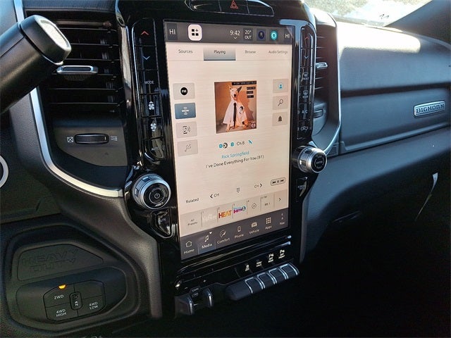 Big Horn Level 1 Plus Equipment Group (12 Touchscreen Display, 2 Way Rear Headrest Seat, 2nd Row In Floor Storage Bins, 4 Way Front Headrests, 40/20/40 Split Bench Seat, 4G LTE Wi-Fi Hot Spot, 9 Alpine Speakers w/Subwoofer, Air Conditioning ATC w/Dual Zone Control, Alexa Built-In, Anti-Spin Differential Rear Axle, Apple CarPlay, Auto Power-Folding Mirrors, Auto-Dimming Rear-View Mirror, Black Exterior Mirrors, Connected Travel & Traffic Services, Connectivity - US/Canada, Dual Glove Boxes, Emergency Vehicle Alert System (EVAS), Exterior Mirrors Courtesy Lamps, Exterior Mirrors w/Heating Element, Exterior Mirrors w/Supplemental Signals, Foam Bottle Insert (Door Trim Panel), Folding Flat Load Floor Storage, Footwell Courtesy Lamp, Forward & Reverse Utility Lights, Front Armrest w/Cupholders, Front Center Seat Cushion Storage, Front Seat Back Map Pockets, Global Telematics Box Module (TBM), Glove Box Lamp, Google Android Auto, GPS Antenna Input, GPS Navigation, HD Radio, Integrated Voice Command w/Bluetooth®, LED Bed Lighting, Locking Lower Glove Box, Luxury Steering Wheel, Manual Adjust 4-Way Front Passenger Seat, Mirror Running Lights, MOPAR Deployable Bed Step, MOPAR Spray In Bedliner, Off-Road Info Pages, Power 2-Way Driver Lumbar Adjust, Power Adjust 8-Way Driver Seat, Power Adjust Mirrors, Power Adjustable Convex Aux Mirrors, Power Heated Folding Telescopic Mirrors, Power Telescoping Mirrors, Premium Cloth 40/20/40 Bench Seat, Radio: Uconnect 5 Nav w/12.0 Display, Rear 60/40 Folding Seat, Rear Dome w/On/Off Switch Lamp, Remote Start System, Remote USB Port - Charge Only, Selectable Tire Fill Alert, SiriusXM Radio Service, SiriusXM w/360L, Steering Wheel Mounted Audio Controls, Storage Tray, and Trailer Tow Pages), Night Edition (Black Exterior Truck Badging, Black Interior Accents, Black Wheel Center Hub, Body Color Grille Surround, Gloss Black Nostrils/Mic Black Grille, Painted Front Bumper, Painted Rear Bumper, and Wheels: 20 x 8.0 Black Painted Aluminum), Quick Order Package 2UZ Big Horn, 3.73 Axle Ratio, 4-Wheel Disc Brakes, 6 Speakers, ABS brakes, Air Conditioning, Alloy wheels, AM/FM radio: SiriusXM, Apple CarPlay/Android Auto, Brake assist, Bumpers: chrome, Cloth 40/20/40 Bench Seat, Compass, Delay-off headlights, Driver door bin, Dual front impact airbags, Dual front side impact airbags, Electronic Stability Control, Front anti-roll bar, Front Center Armrest w/Storage, Front fog lights, Front License Plate Bracket, Front reading lights, Fully automatic headlights, Heated door mirrors, Illuminated entry, Low tire pressure warning, Manual Adjust 4-Way Driver Seat, Manufacturer's Statement of Origin, Occupant sensing airbag, Outside temperature display, Overhead airbag, Overhead console, Painted Flat Wheel-to-Wheel Side Steps, Panic alarm, ParkView Rear Back-Up Camera, Passenger door bin, Passenger vanity mirror, Power door mirrors, Power steering, Power windows, Radio data system, Radio: Uconnect 5 w/8.4 Display, Rear anti-roll bar, Rear Folding Seat, Rear seat center armrest, Rear step bumper, Rear window defroster, Remote keyless entry, Security system, Speed control, Tachometer, Tilt steering wheel, Traction control, Trip computer, Turn signal indicator mirrors, Variably intermittent wipers, Vinyl 2nd Row Seat, Voltmeter, and Wheels: 18 x 8.0 Polished Aluminum.
